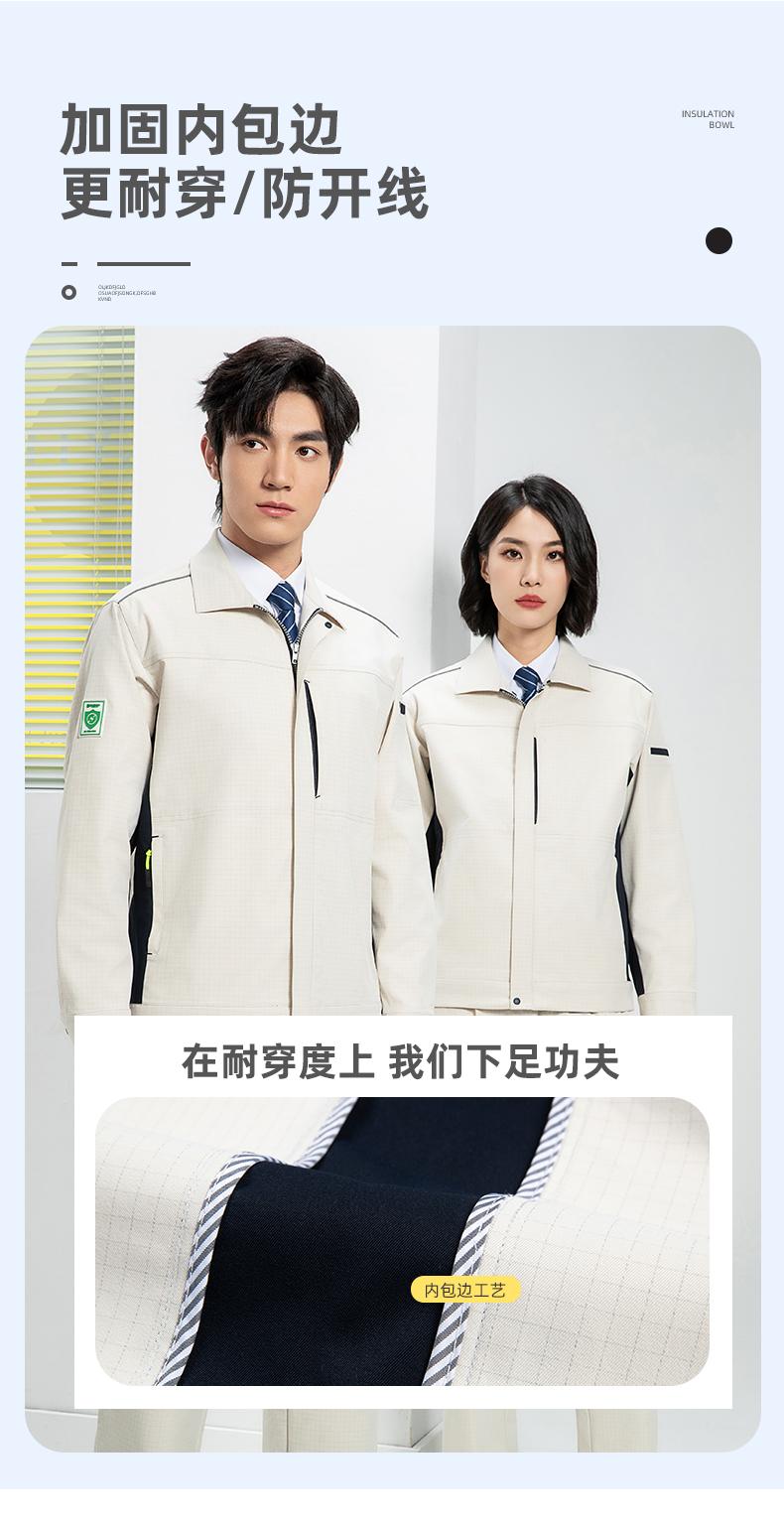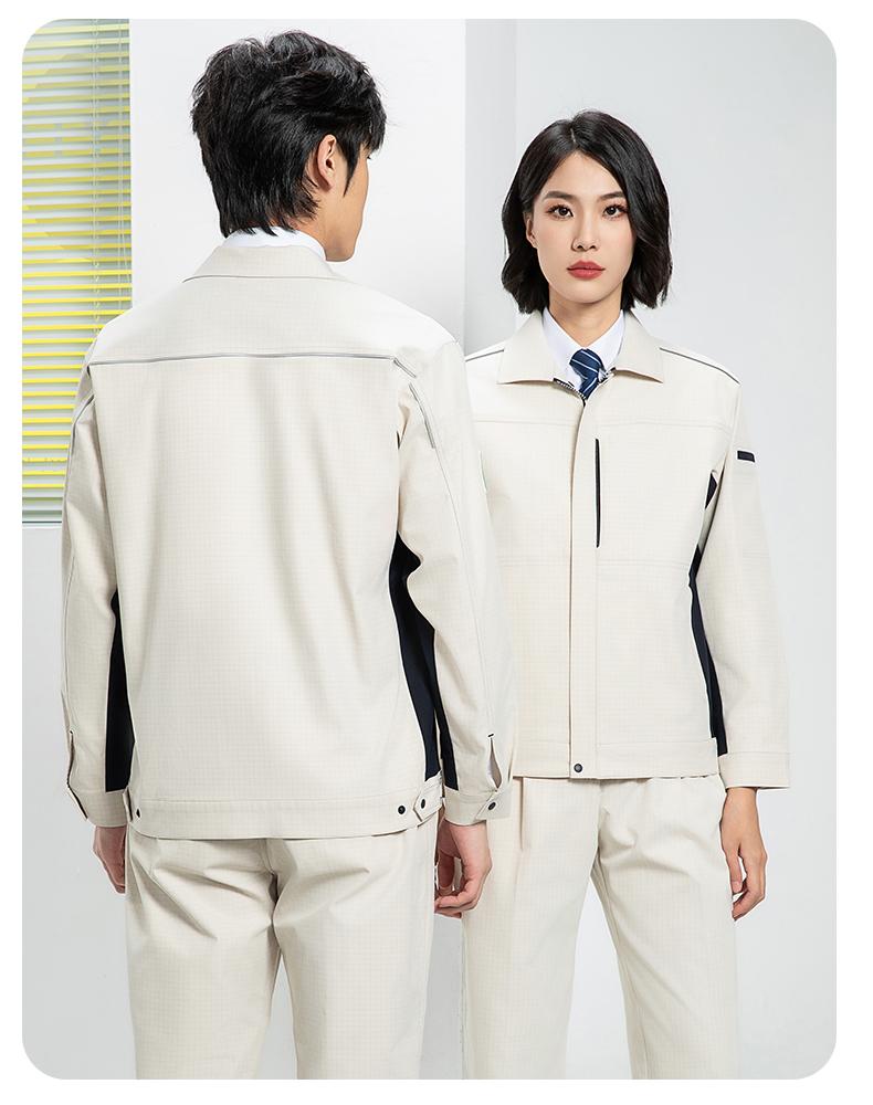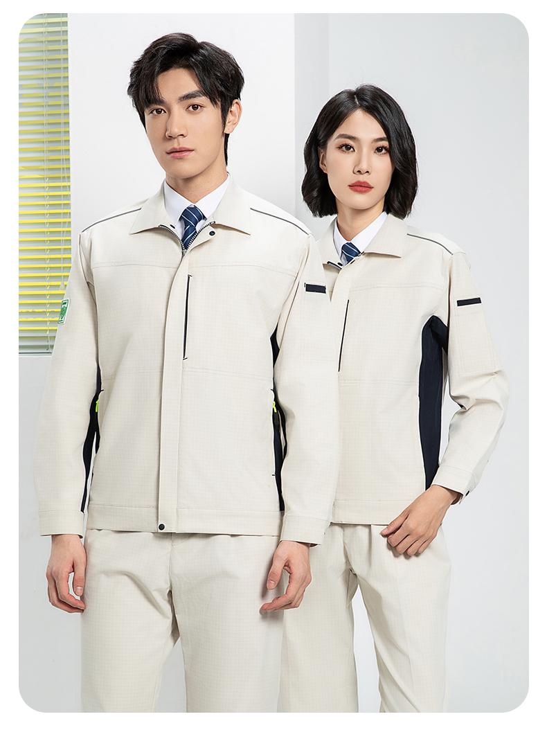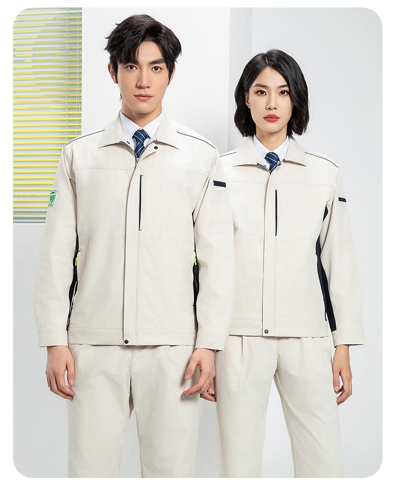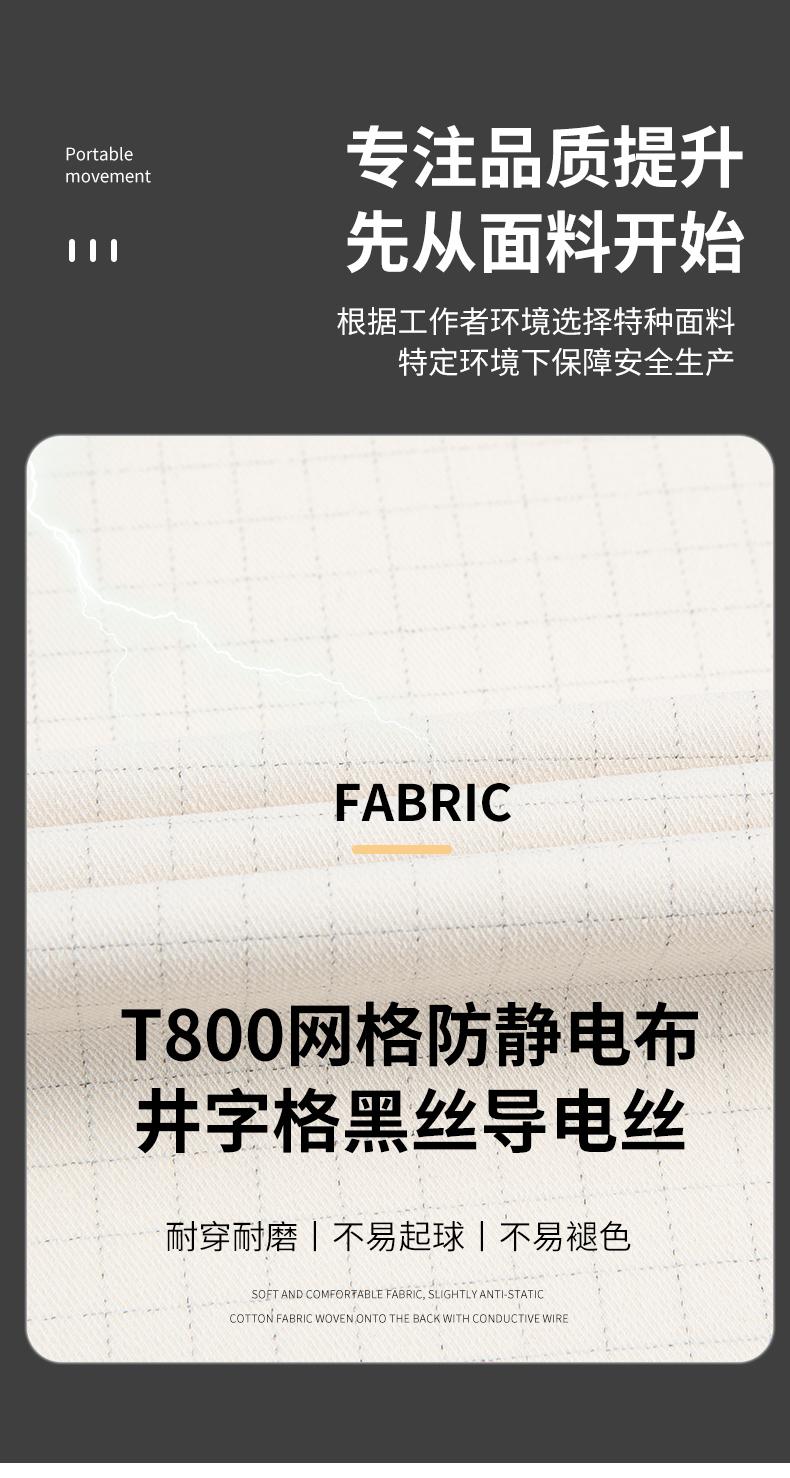 防静电工作服的面料选择直接决定其防护效能。主流选择是**嵌织导电丝的特种涤棉面料**···