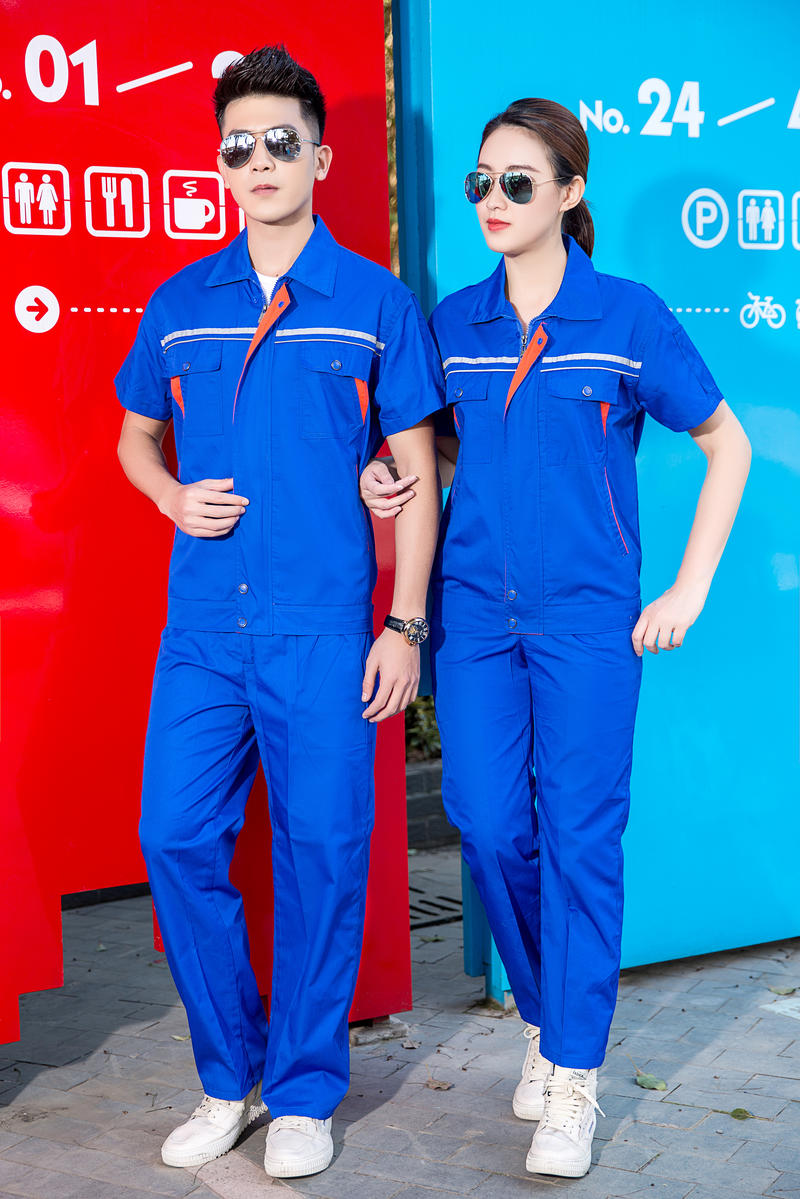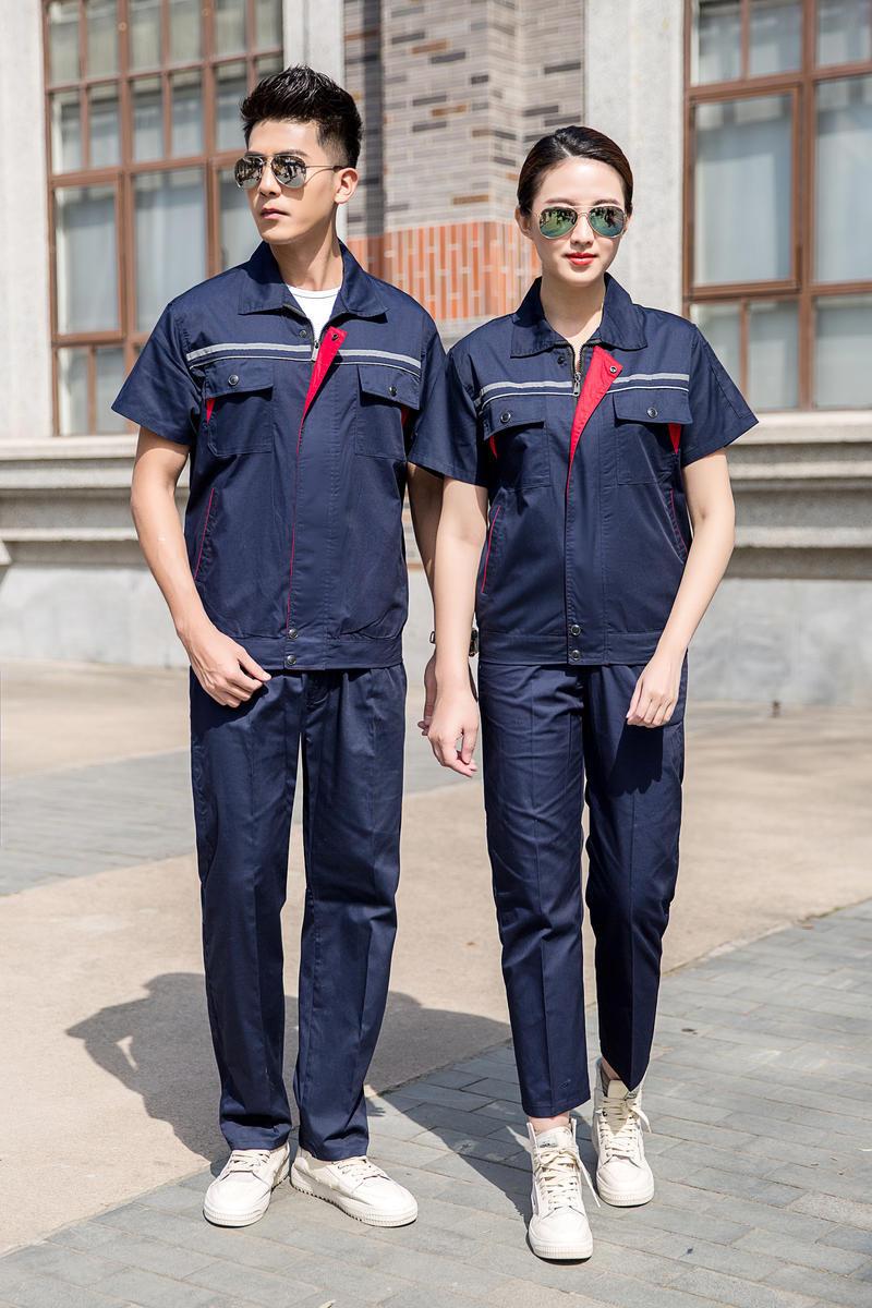 全棉短袖拼色工作服,巧妙融合了舒适实用与时尚美感。其核心优势在于,**全棉面料**确···