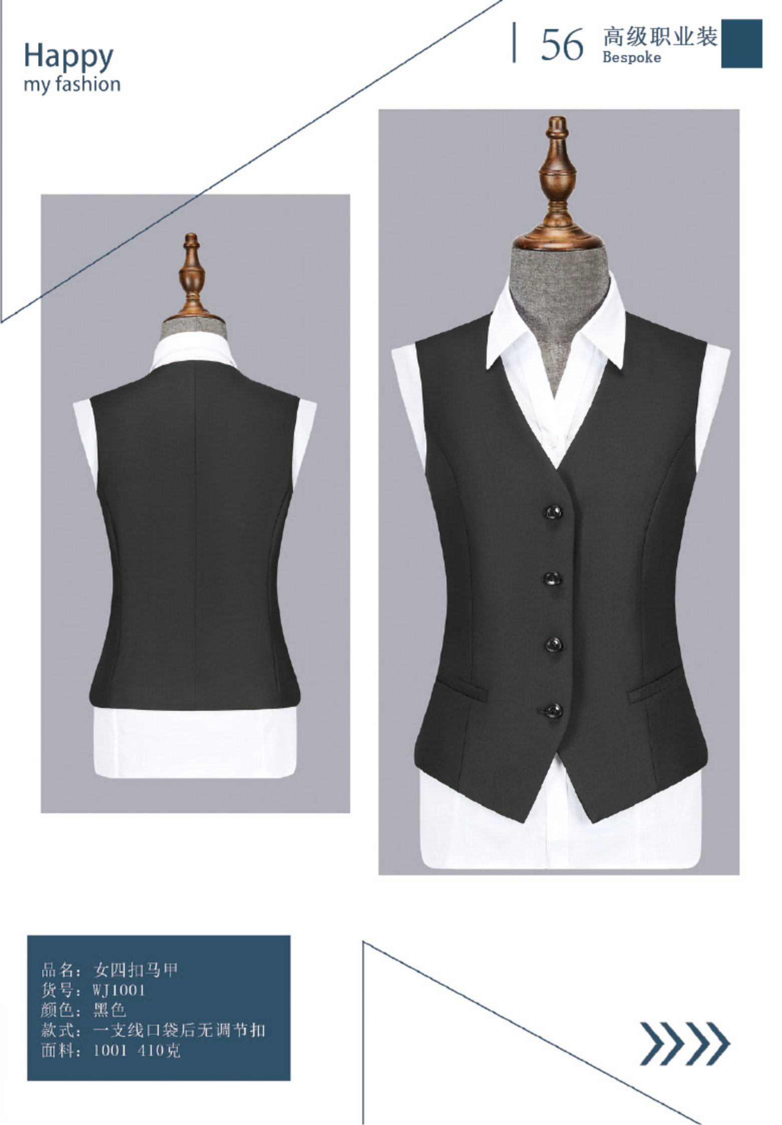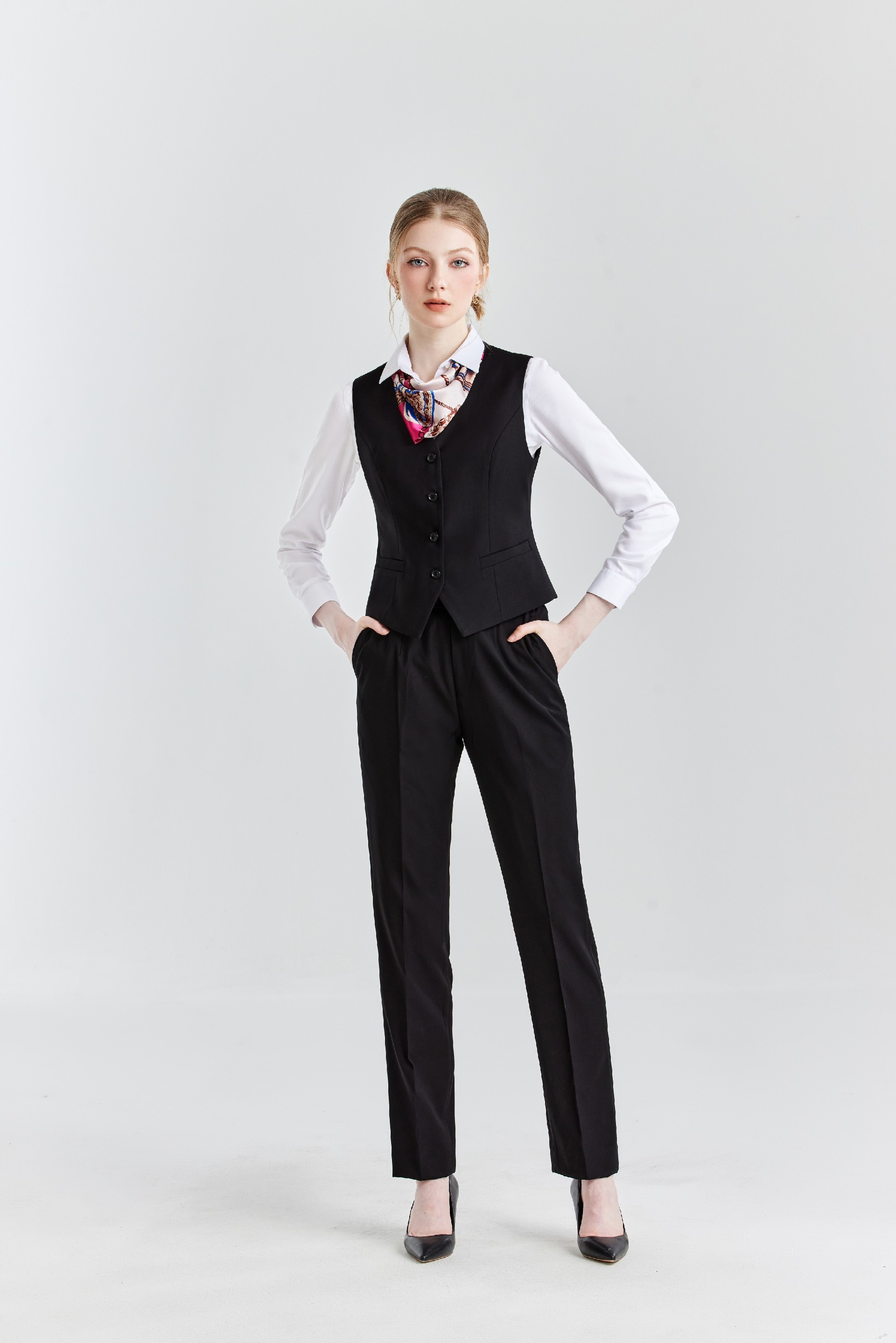 黑色女款行政西装马甲