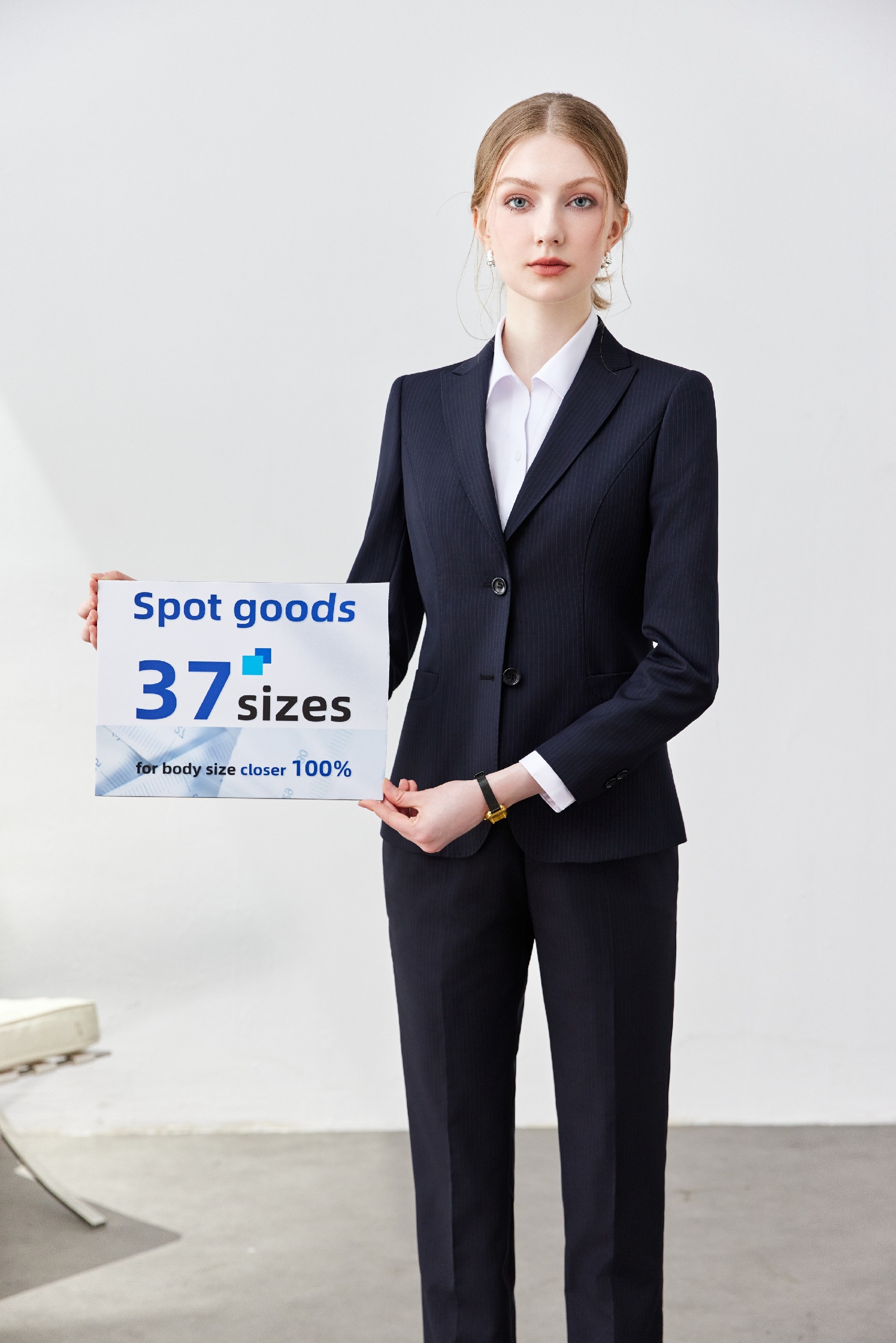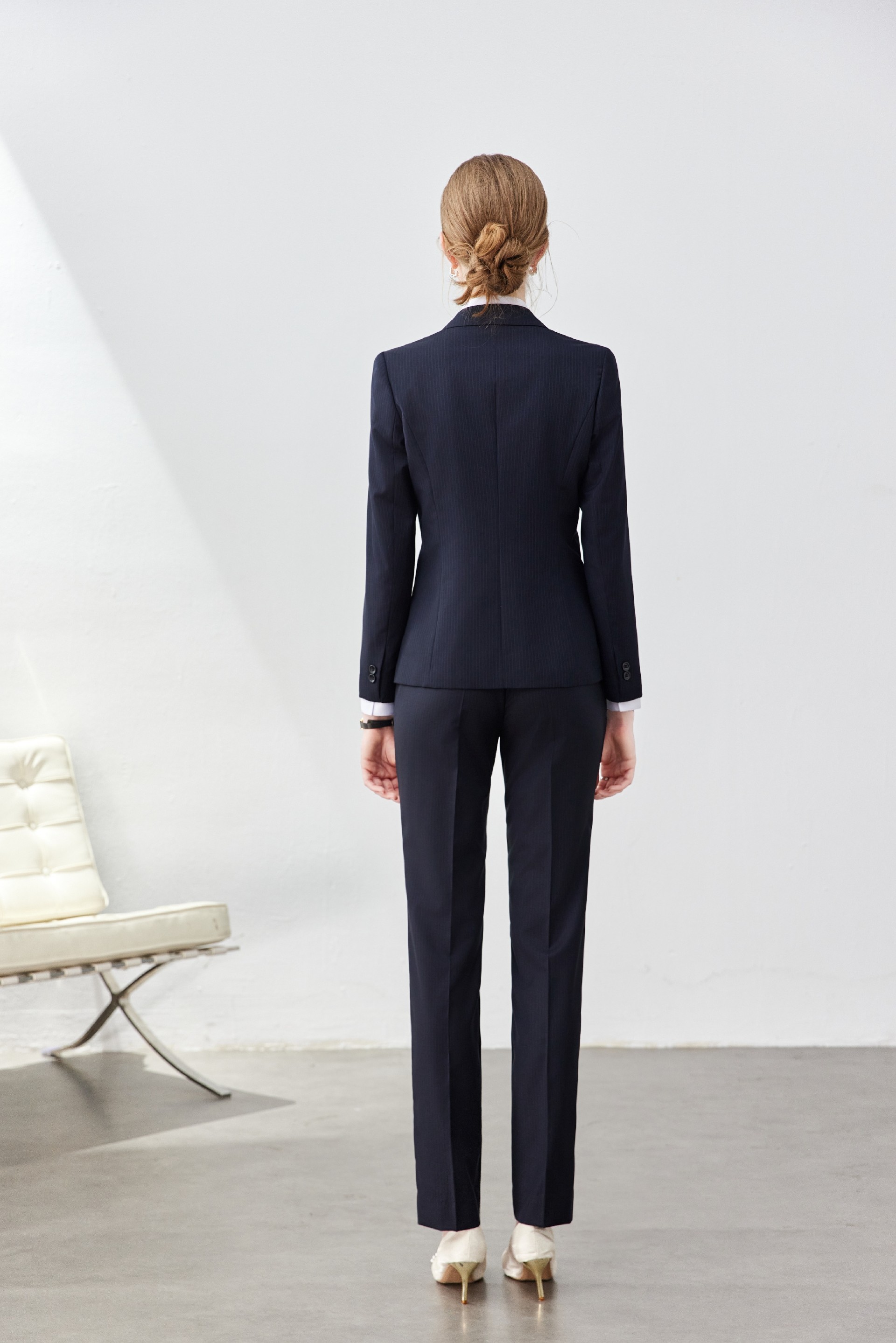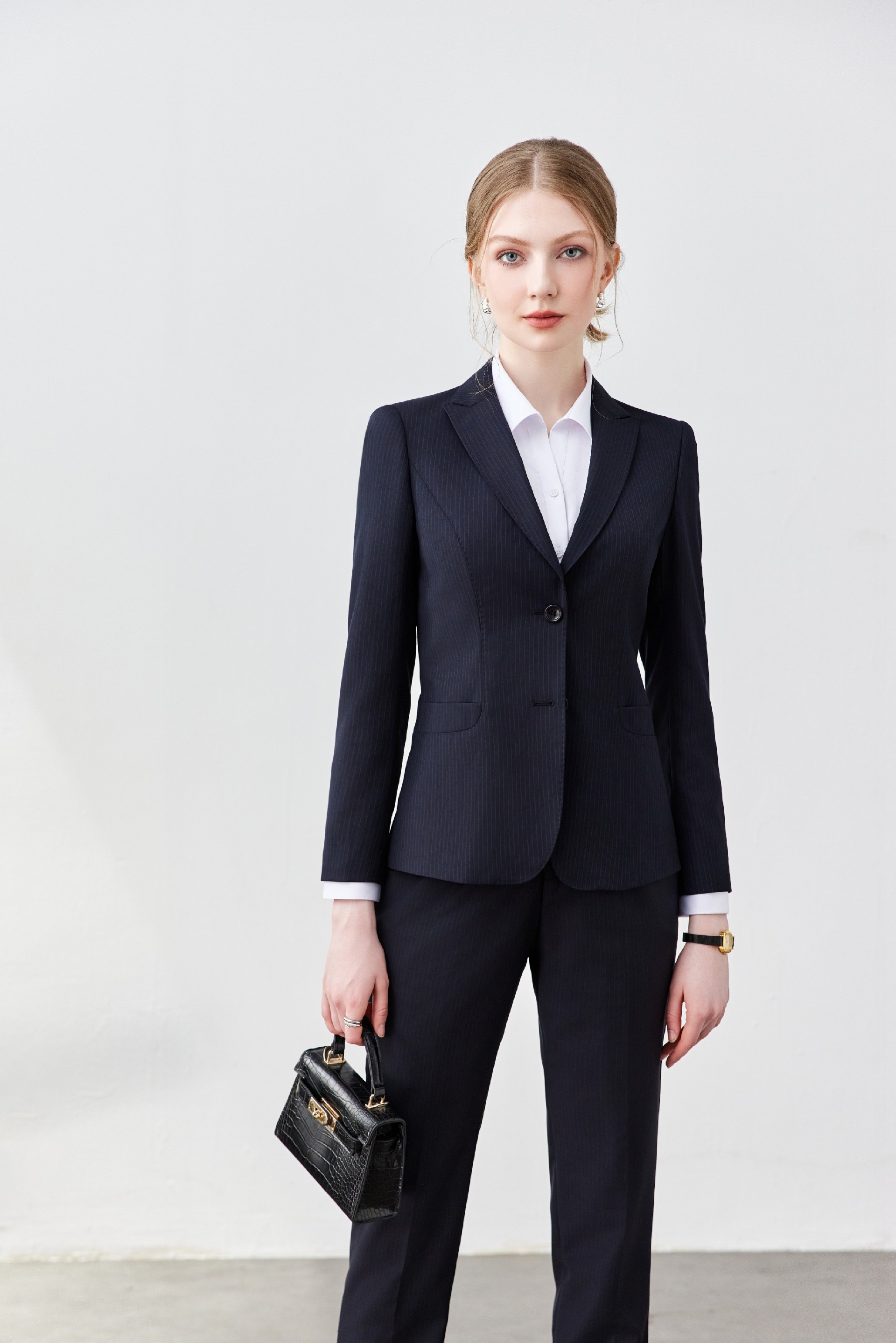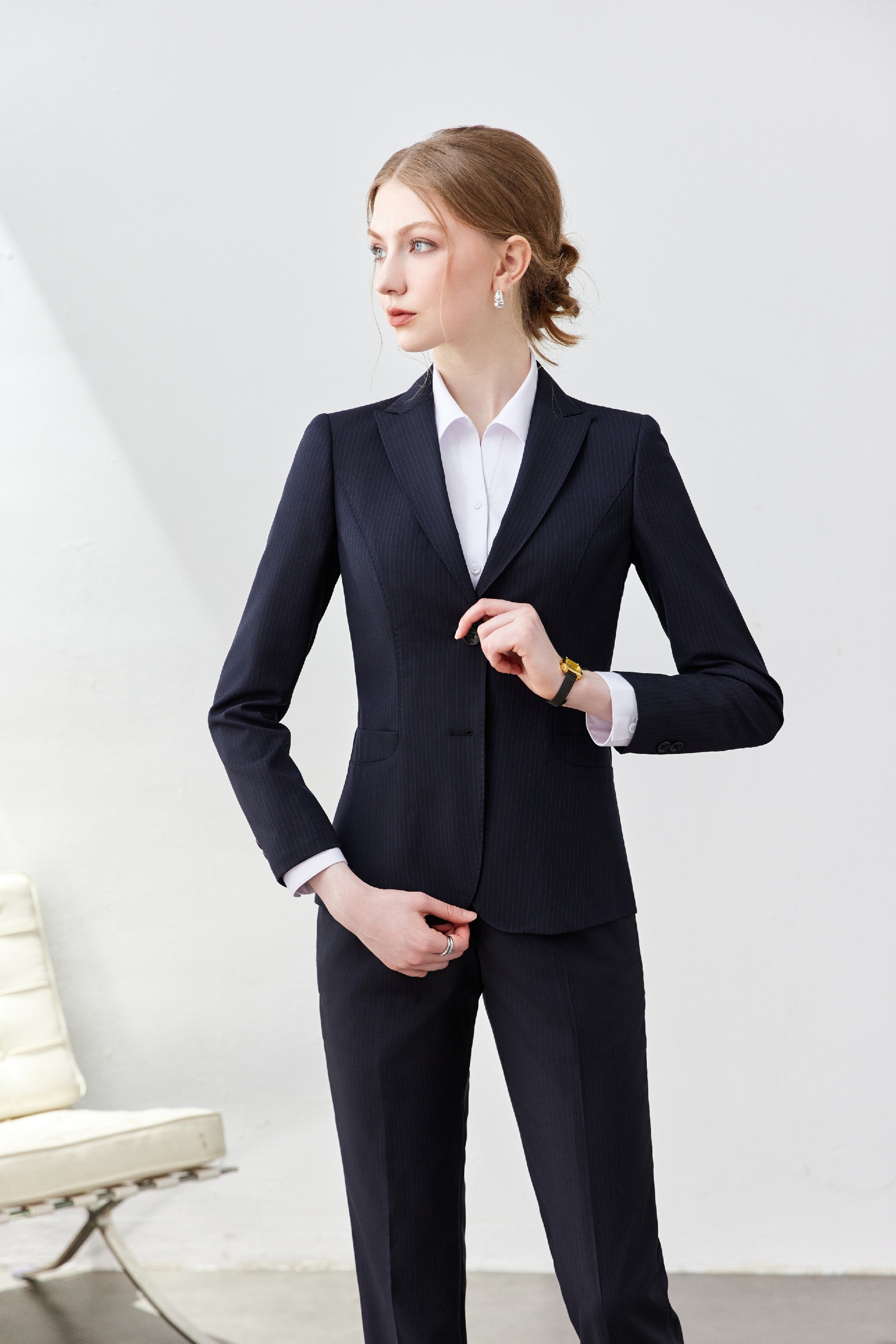 蓝条纹女款行政西服职业装套装