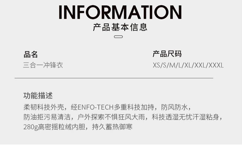 三合一拼色羽绒内胆冲锋衣