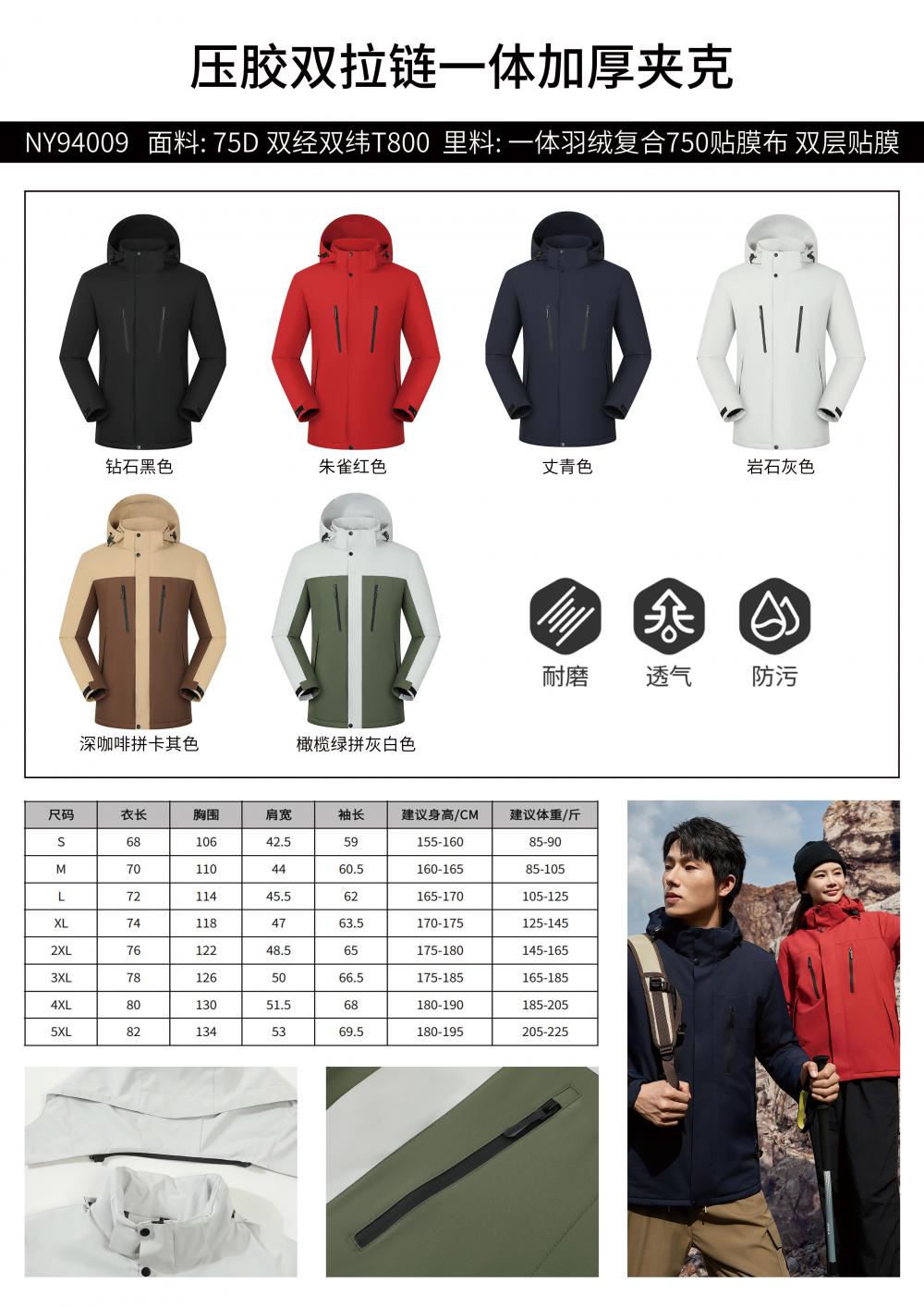 压胶双拉链一体厚夹克冲锋衣