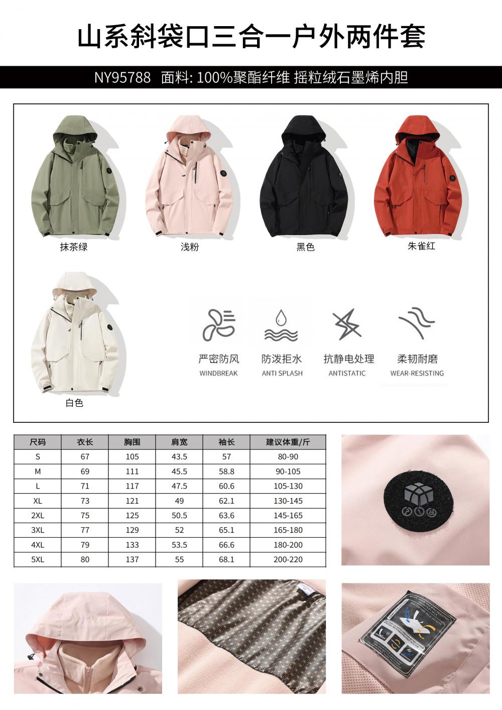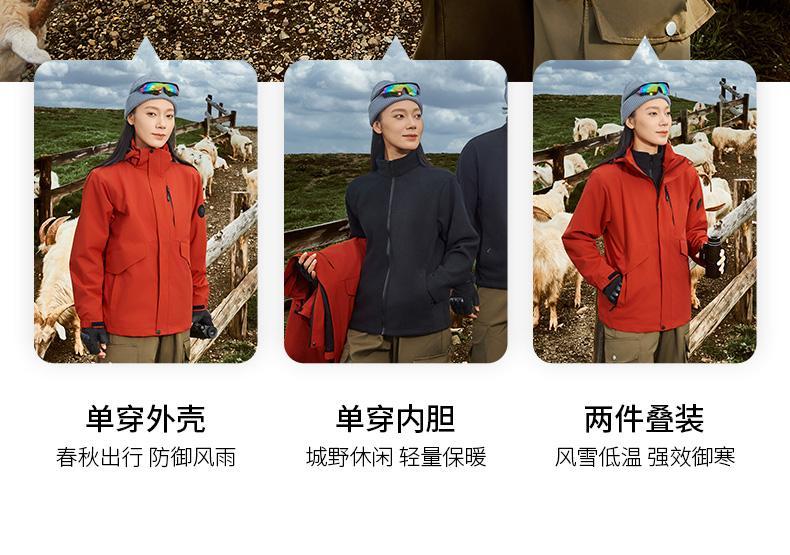 三合一斜插袋户外两件套冲锋衣