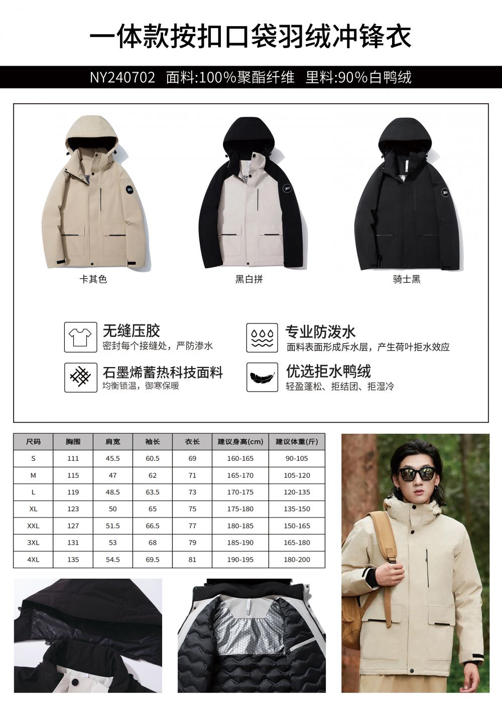 一体款按扣口袋羽绒内胆冲锋衣