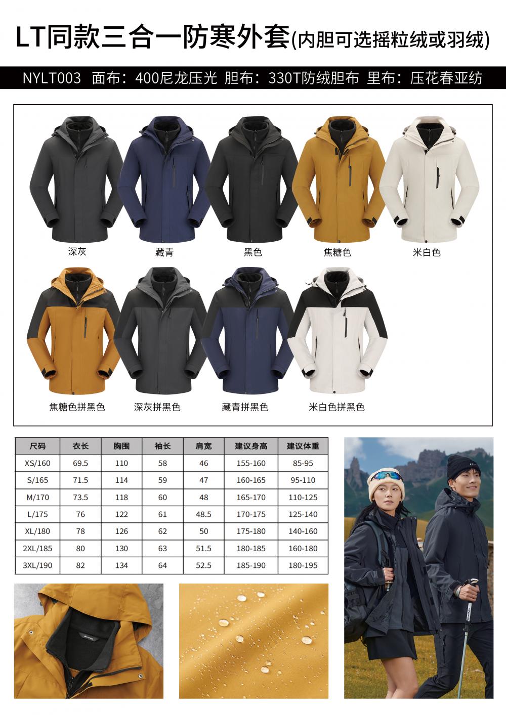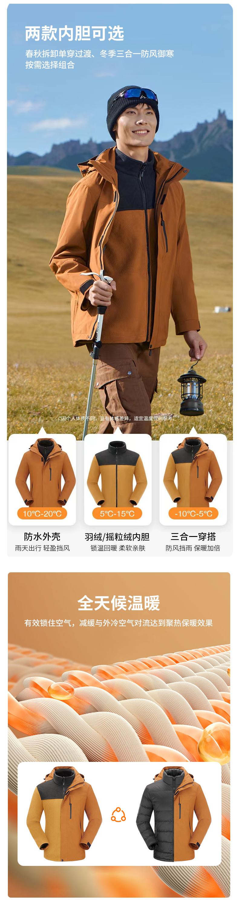 三合一防寒外套冲锋衣羽绒内胆或摇粒绒内胆