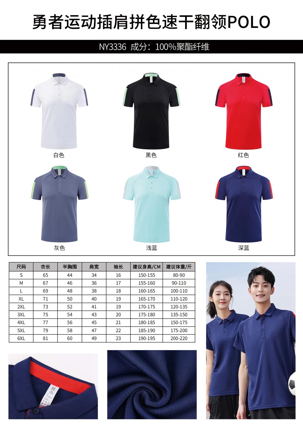 勇者运动插肩拼色速干翻领POLO衫