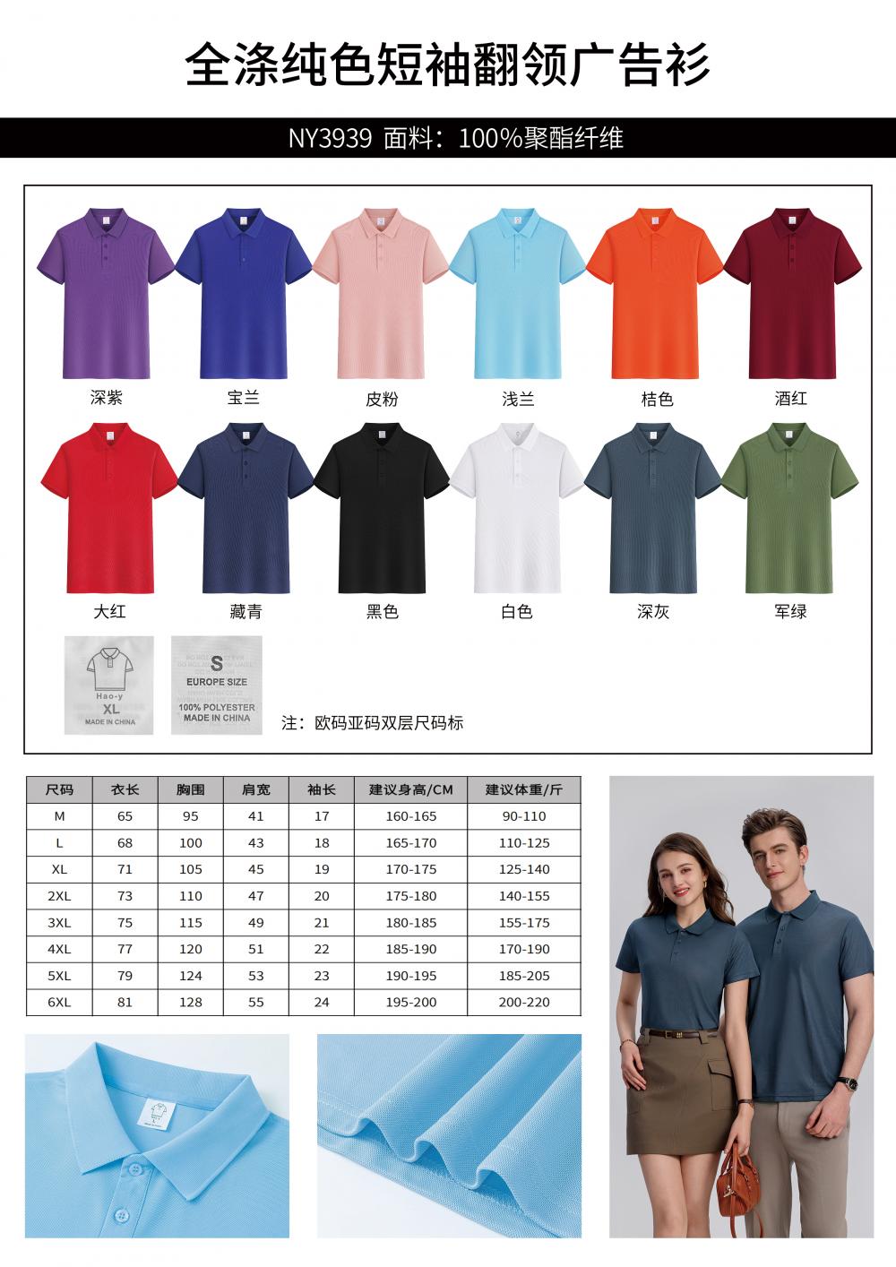 全涤纯色短袖翻领广告衫POLO衫