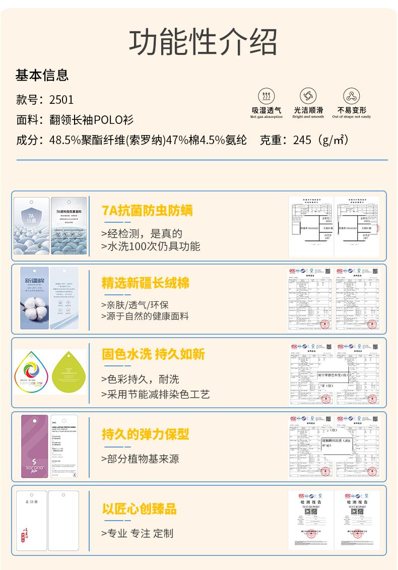 40支245克斜纹德绒莫代尔棉秋冬长袖POLO衫