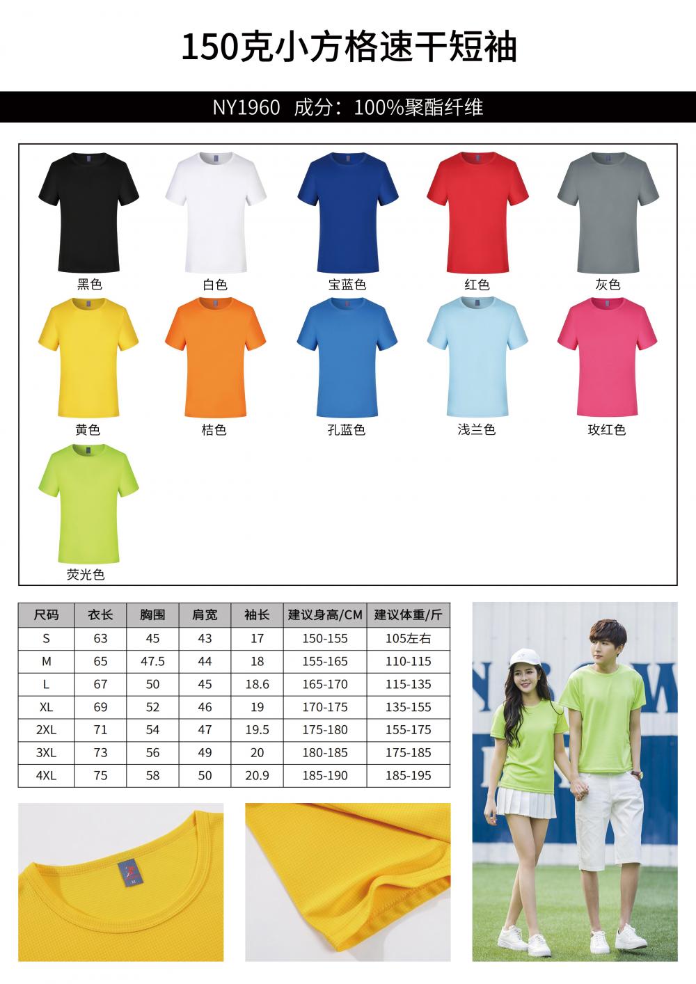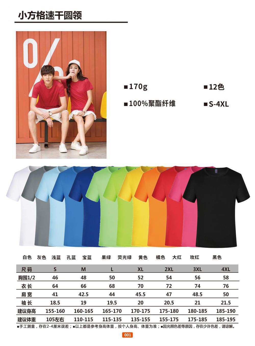 小方格速干短袖圆领衫文化衫广告衫