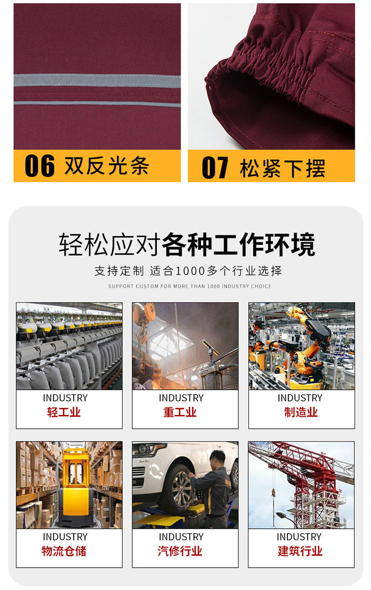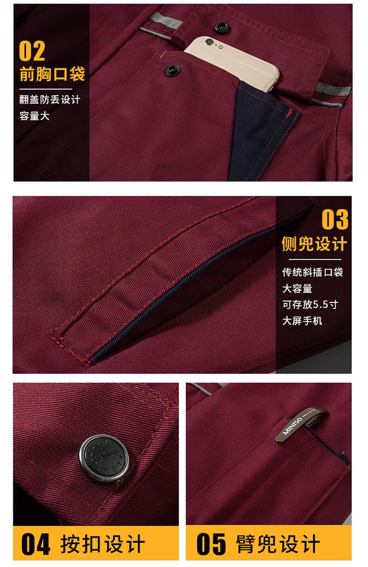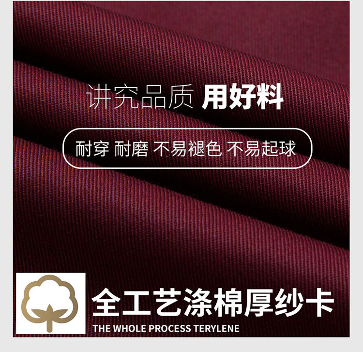翻领工作服的美观性突出,显著提升职业形象。其经典的领型设计源自正装,比圆领或立领更具结构感和正式感,能修饰颈部及脸部线条,显得人更精神干练。翻领设计还提供了更多搭配可能性,如内搭衬衫或T恤,可敞开亦可系上,展现出层次感与专业性。这种既稳重又不失时尚的款式,打破了传统工作服的刻板印象,在实用之余,赋予了劳动者更多的体面与自信。